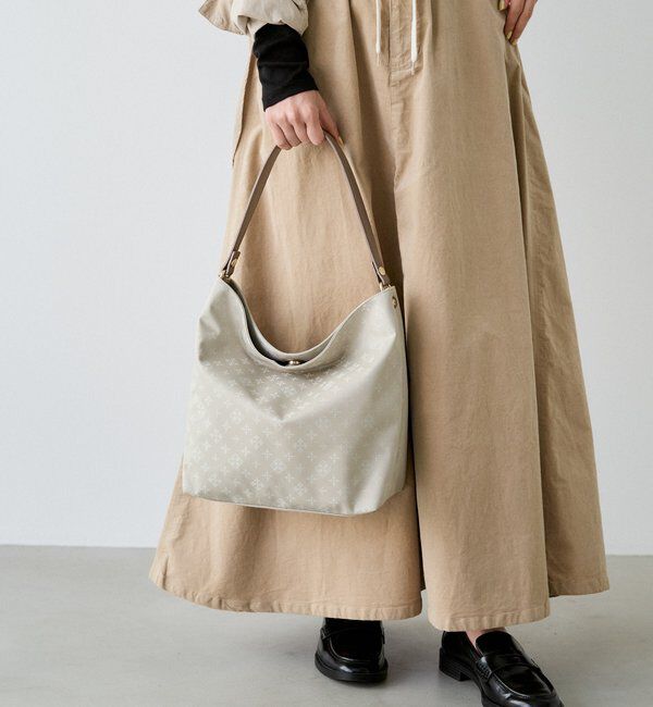 軽やかなクラウズナイロンにWOODLANDERならではの品よく映えるホースプリントをあしらったトートバッグ。 柔らかい素材感と程よいハリが共存し、日常使いしやすい大きめサイズながら、持つだけで大.. |