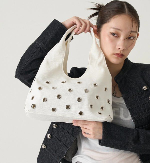 【EYELET PU SHOULDER BAG/アイレットPUショルダー】 シンプルながらもエッジの効いたデザインが魅力のショルダーバッグが登場! ■デザイン ・ボディ全体に施されたスタッズが、コーディネートに.. |