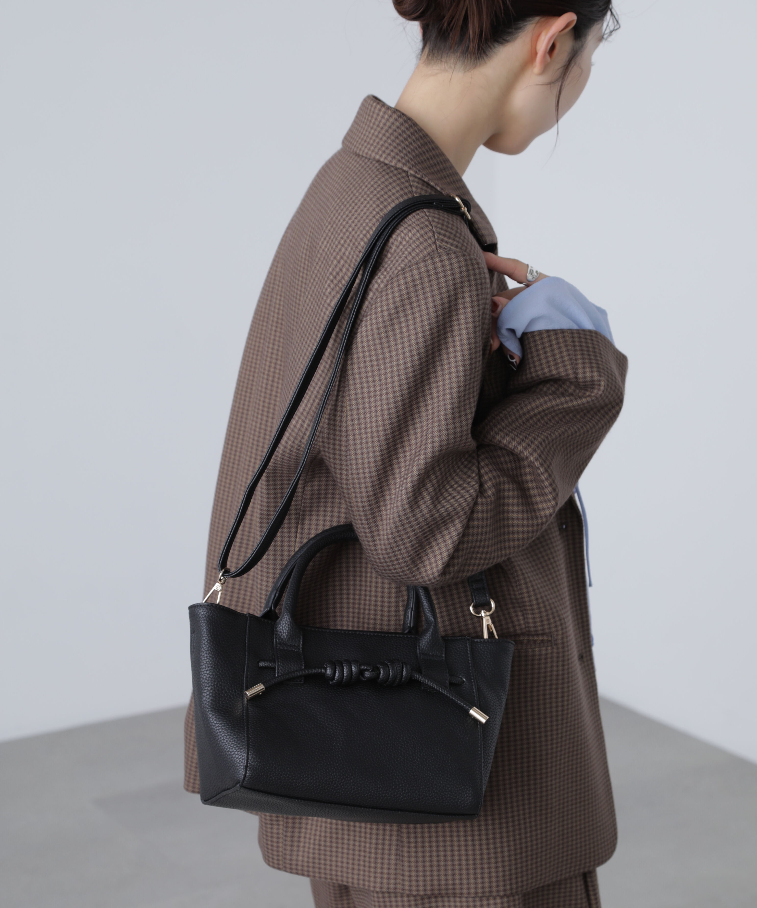 荷物を入れると容量が広がって見た目の変化も嬉しいデイリー使いにオススメなバッグ。形が崩れず安定感があり大容量の荷物を入れられます。レースアップディテールがアクセントになってシンプルに.. |
