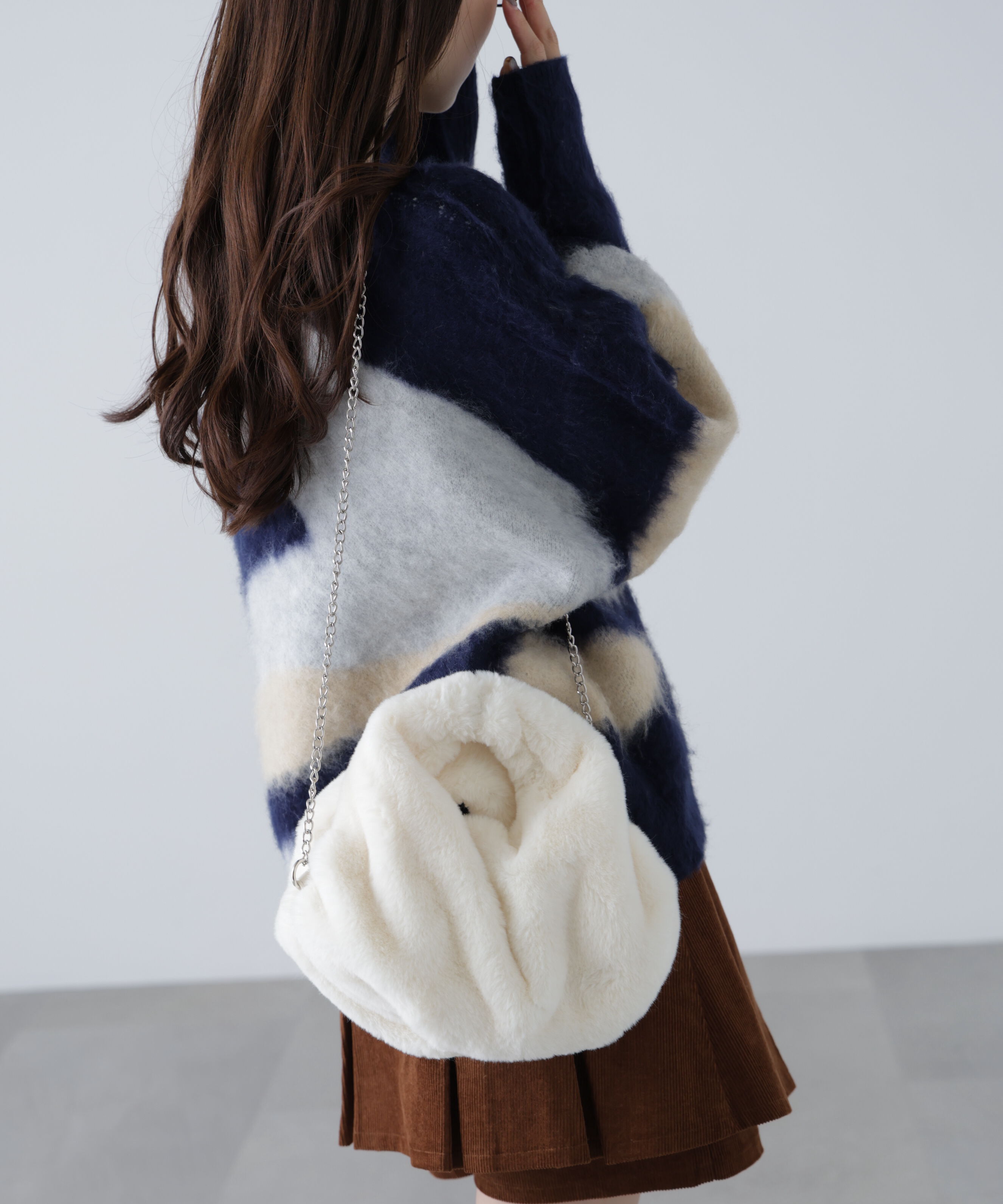 ころんとしたフォルムが可愛らしい今季トレンドのショルダーバッグ。毛足のあるボリュームシルエットに、華奢なチェーンショルダー付きです。馴染みやすいカラーリングなので様々なコーディネート.. |