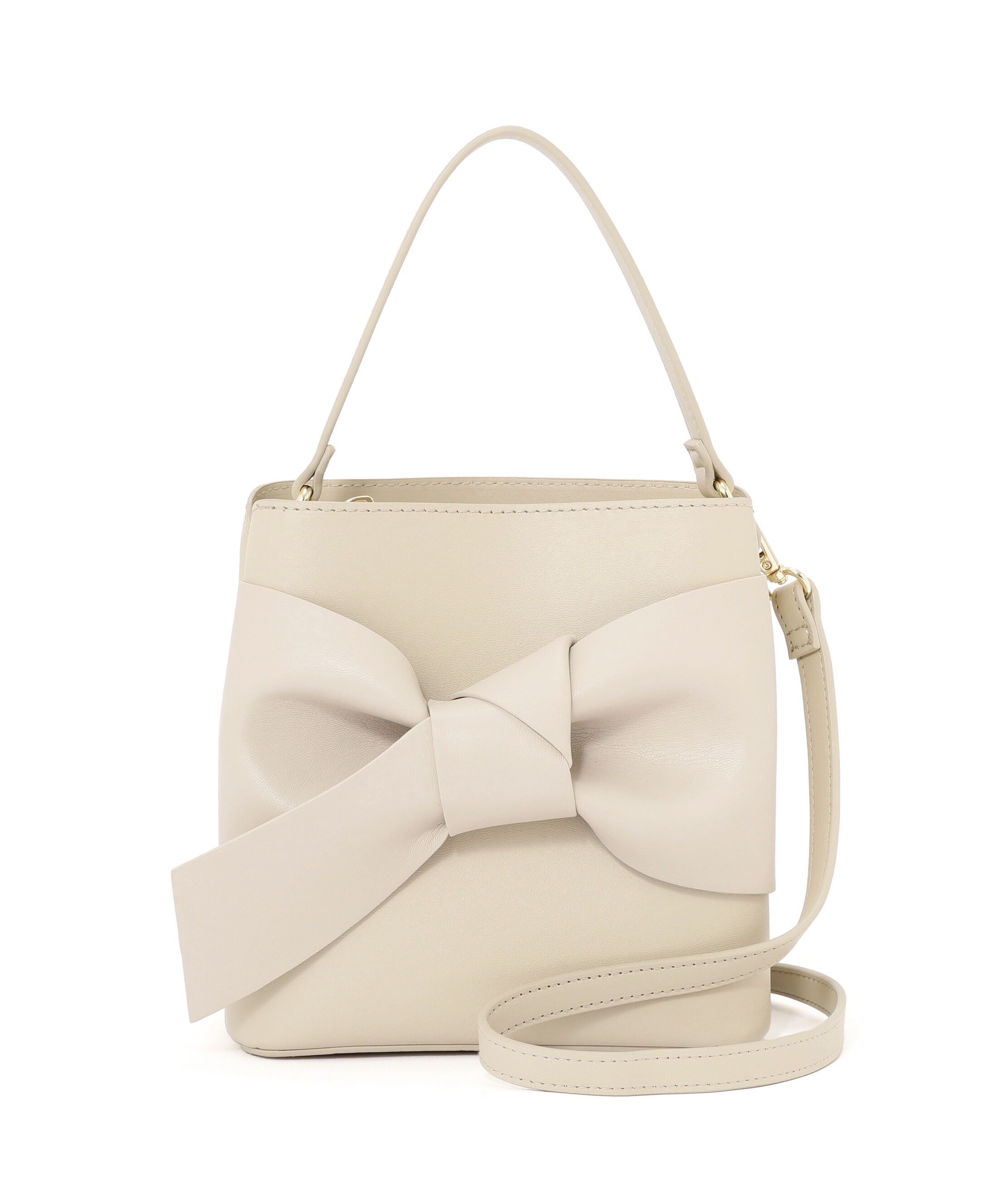 フロントにあしらったリボンが愛らしいバッグ。中央で2部屋に仕切られたデザインで、中身が見やすくなっています。開閉口はマグネットボタン、中はオープンポケット1つ。付属ショルダーは取り外し.. |