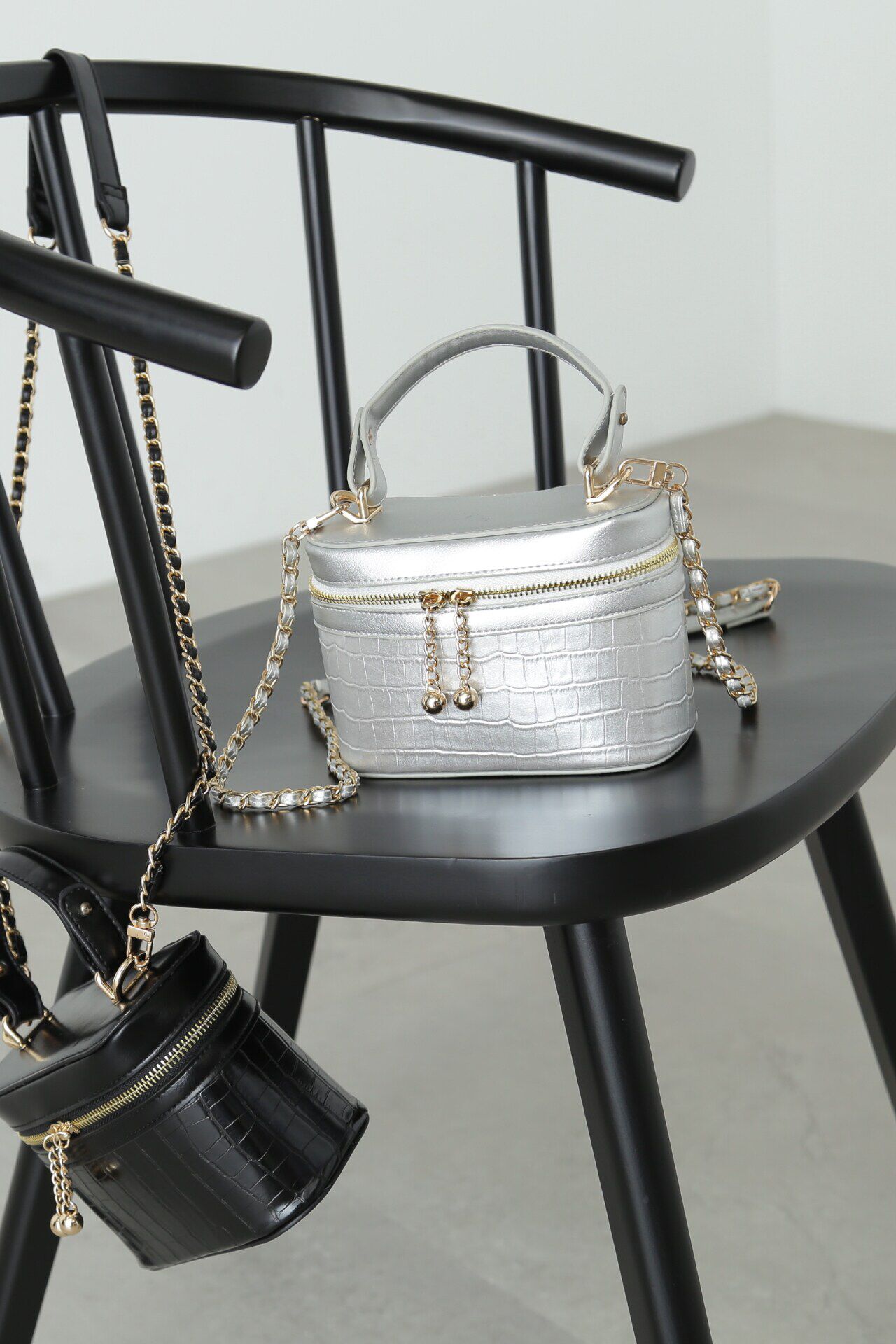 上品なチェーンベルト付きバニティ型バッグです。メイクポーチのような上品な印象の形で、蓋がガバッと開くためとっても使いやすいアイテム。高級感のあるクロコ柄の合皮素材で、チェーンベルトが.. |