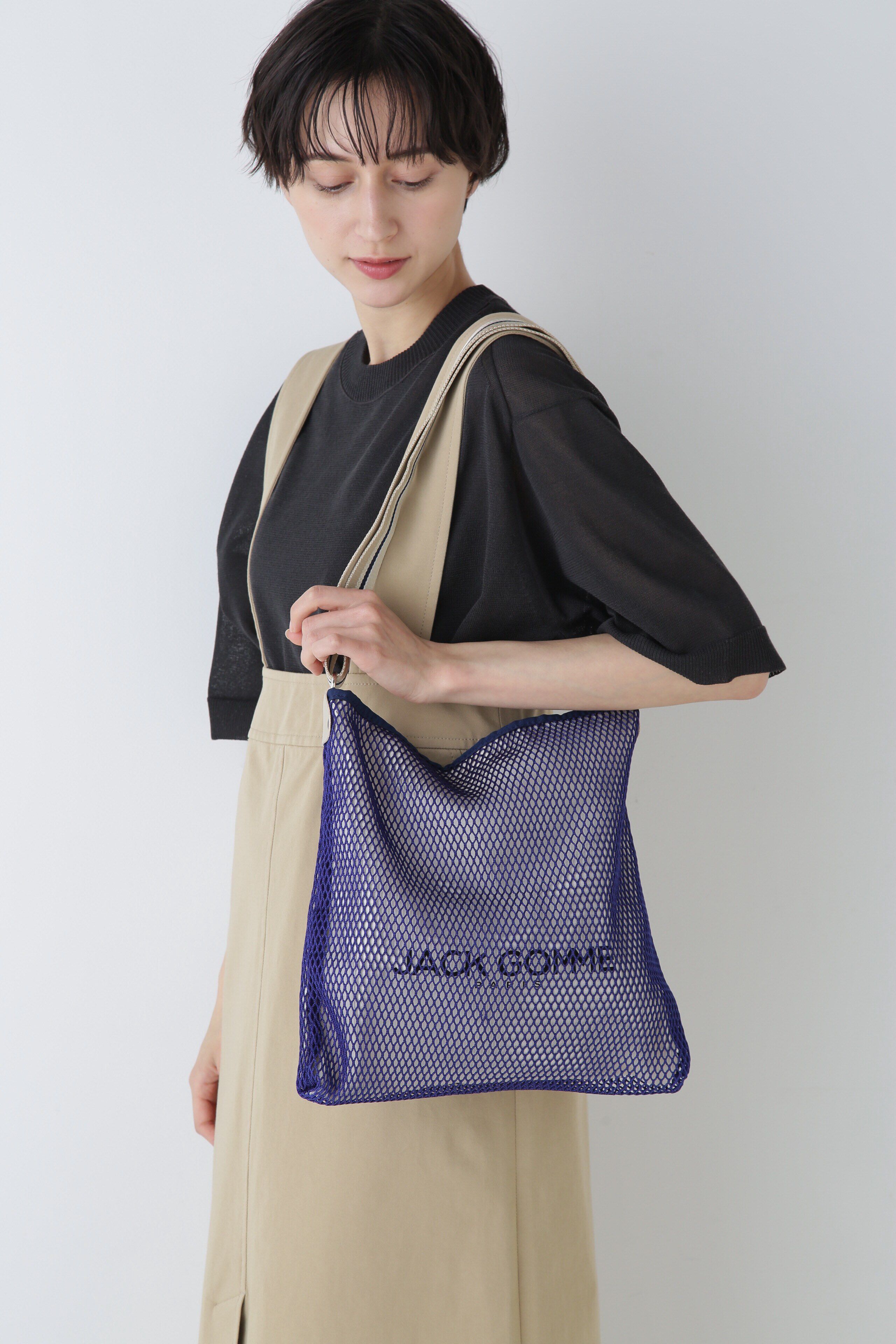 メッシュ素材のロゴバッグです。元気の出るカラーで旅行などのお出かけにピッタリのバッグです。ショルダー部分のラインテープやロゴ入りのレザーがデザインのポイントです。【JACK GOMME】1985年.. |