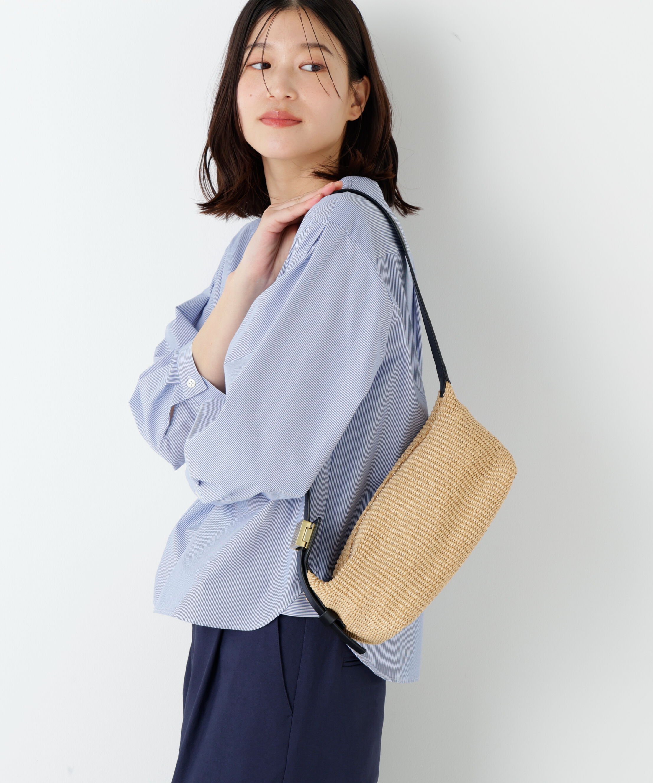 スタイリングを軽やかに仕上げてくれるブレードショルダーバッグ【デザインのポイント】ギボシ付きオリジナルパーツで長さ調節可能な遊び心あるバッグです。【素材のポイント】イタリア製ラフィア.. |