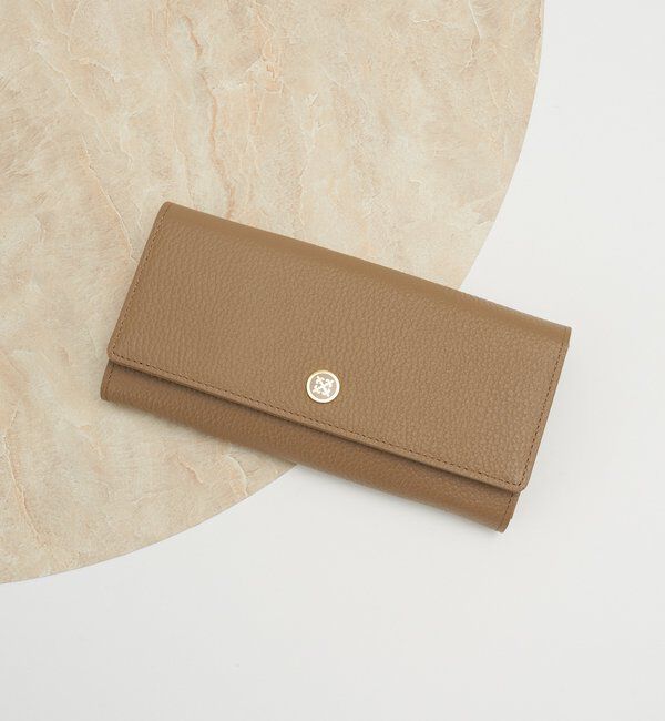 シンプルな佇まいの中に、カード・コイン・紙幣を美しく整えて収納できるロングウォレット。 フラップ中央の丸プレートが上品に輝き、手元に大人らしい気品を添えます。 開けば中身が一目で見渡せ.. |