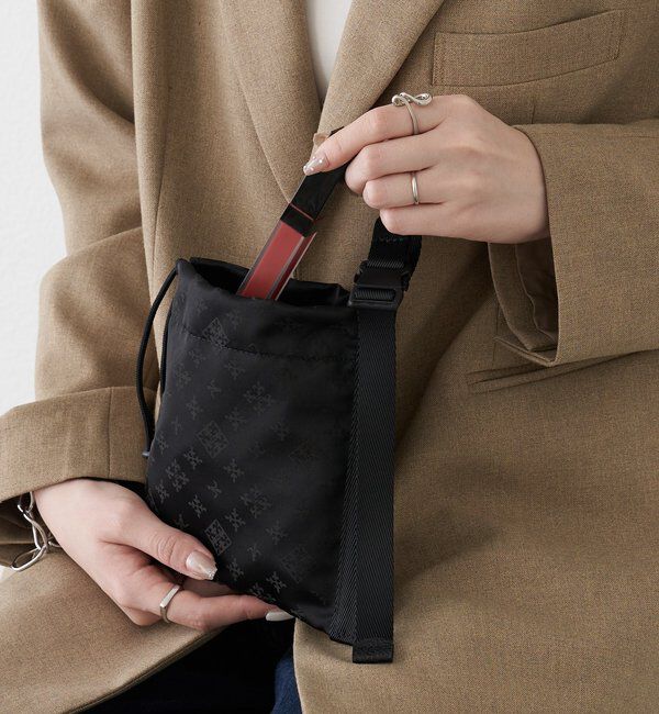 ナイロンジャガードの上品な表情に、ハリのあるテープを組み合わせた巾着ポーチ。 マチのないすっきりとしたフォルムで、バッグの中でもかさばらず、軽やかに持ち歩けるサイズ感です。 【デザイン.. |