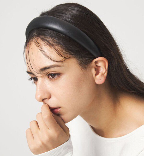 コーディネートのアクセントに■デザインヘアアレンジが簡単にきまる、レザーライクな素材を使用したパデットカチューシャ。ほどよいボリュームで使いやすいアイテムです。シンプルなダウンヘアや、.. |