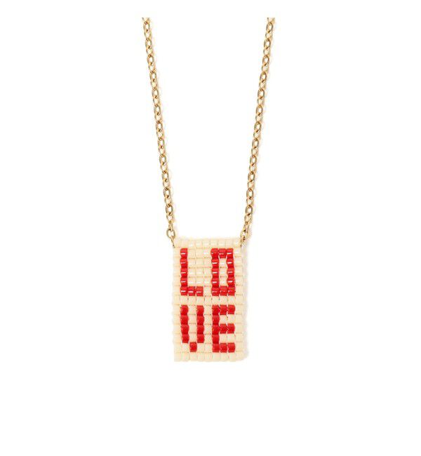 ■デザイン遊び心溢れるビーズ編みのネックレス。ストロベリーと「LOVE」のロゴが、胸元をハッピーに彩ります。■コーディネートシンプルな白Tシャツや、あえてハンサムなジャケットスタイルのハズし.. |