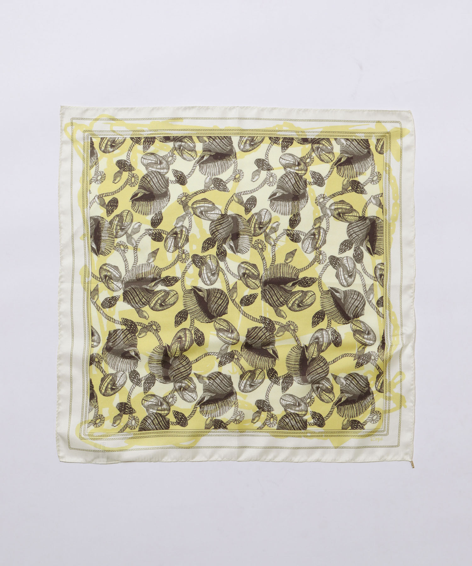 【素材】シルクならではの光沢のある綾織り生地【デザイン・シルエット】1968年から続く「ロペ」のアーカイヴより海にまつわる柄を抽出。今の気分に合わせてリデザインした柄の数々。9枚分のスカー.. |