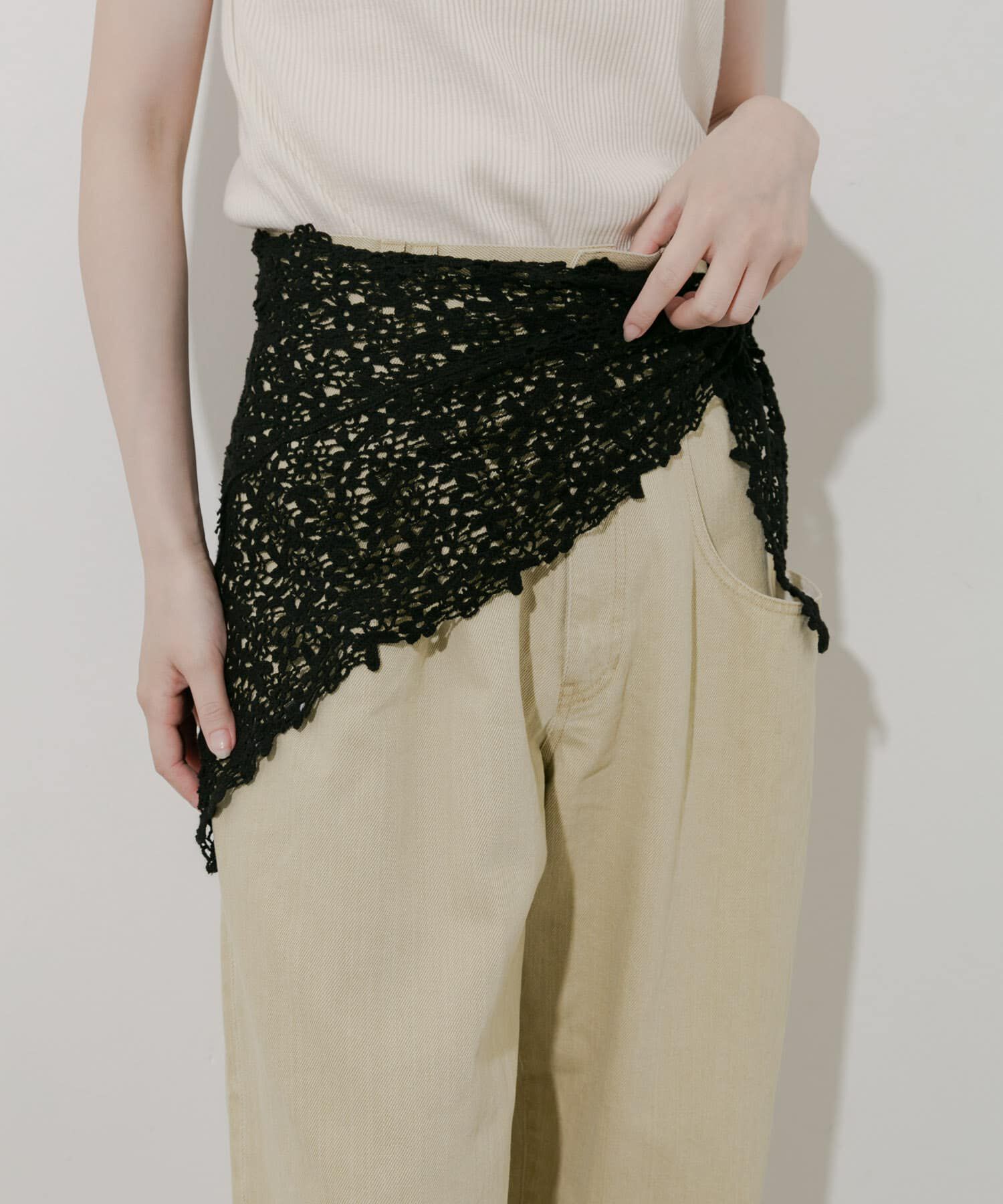 【コーデに甘さを加えるレーススカーフ】●多彩な取り入れ方が楽しめるスカーフ●甘さのあるレース素材●バブーシュカとしても使える繊細なレースデザインがガーリーな雰囲気のスカーフ。腰回りに巻き.. |