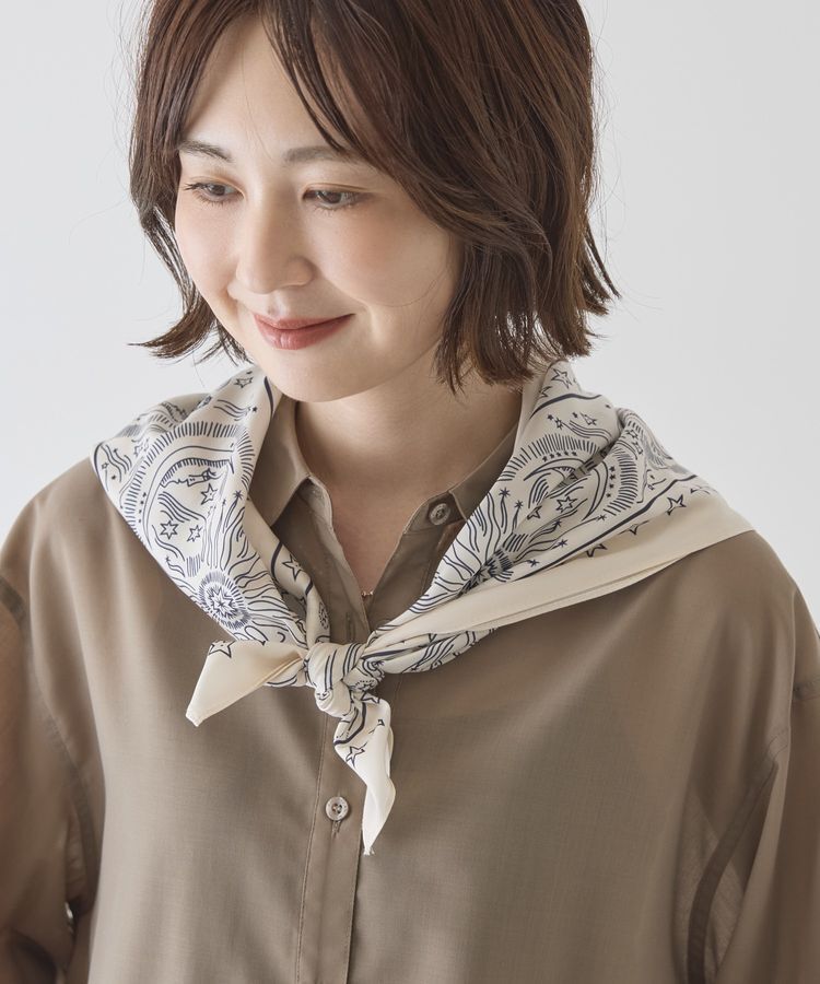 上品な遊び心で差をつける、万能マップ柄スカーフヴィンテージ感のあるマップ柄が目を引くスカーフは、落ち着いたトーンで取り入れやすいのが特徴です。首元のワンポイントで印象を手軽に変えられ.. |