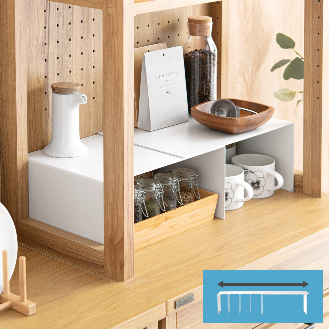 伸縮コの字ラック PiTTA[ピッタ] (奥行き14cmタイプ)/「もっと“こうだったら”使い勝手いいのに」と、開発者の悩みから生まれた、伸縮コの字ラック“PiTTA(ピッタ)”置きたい物・場所に合わせて自由自.. |