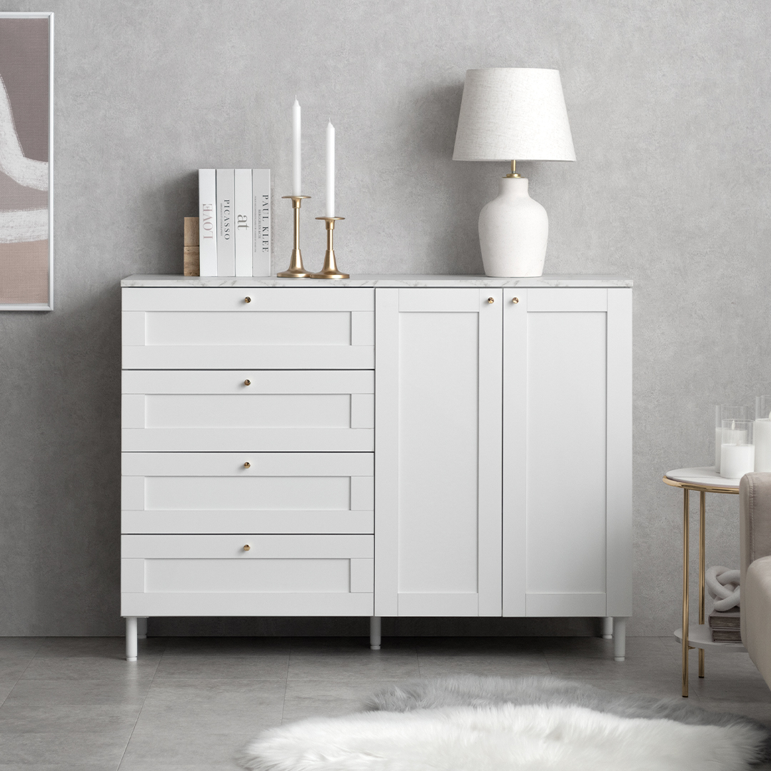 選べる2素材チェスト Ravelle〔ラヴェル〕/大容量の収納力と美しさを兼ね備えたキャビネット“Ravelle(ラヴェル)”。4杯の引き出しと可動棚付きの扉収納で、衣類や日用品をすっきり整理整頓。上品な.. |