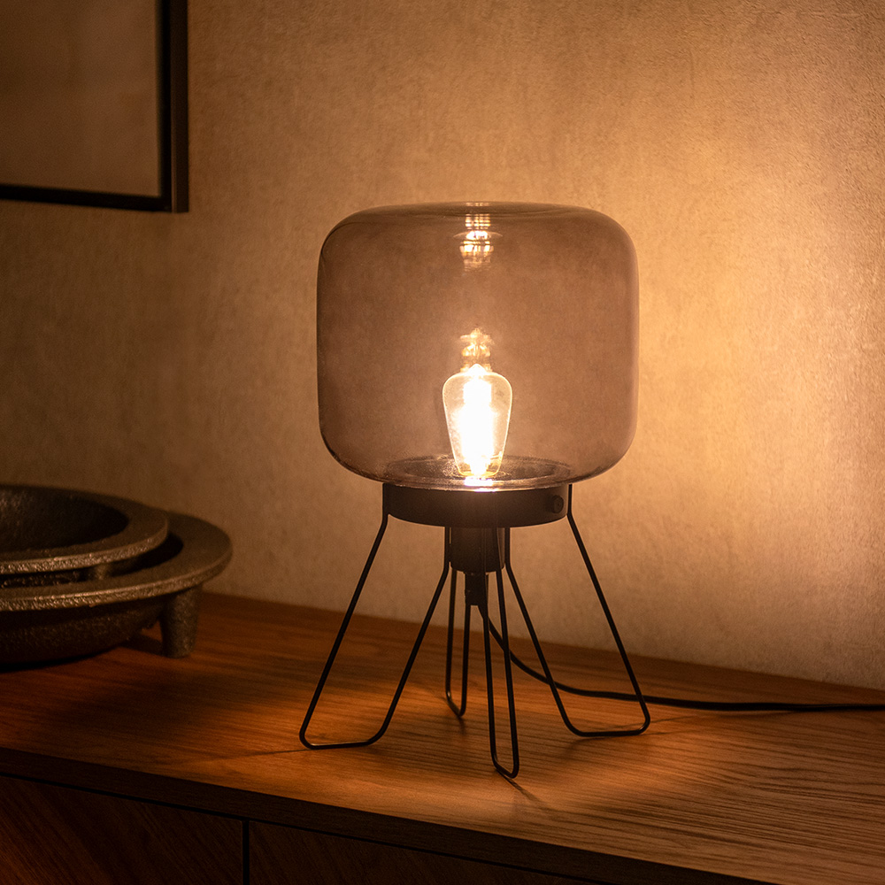 テーブルライトKraen〔クレイン〕/深みのあるブラックガラス越しに、やわらかな光が静かに広がるライト。ランタンの余韻を思わせる落ち着きが、空間をそっと灯します。ダイヤル一つで無段階に調光.. |